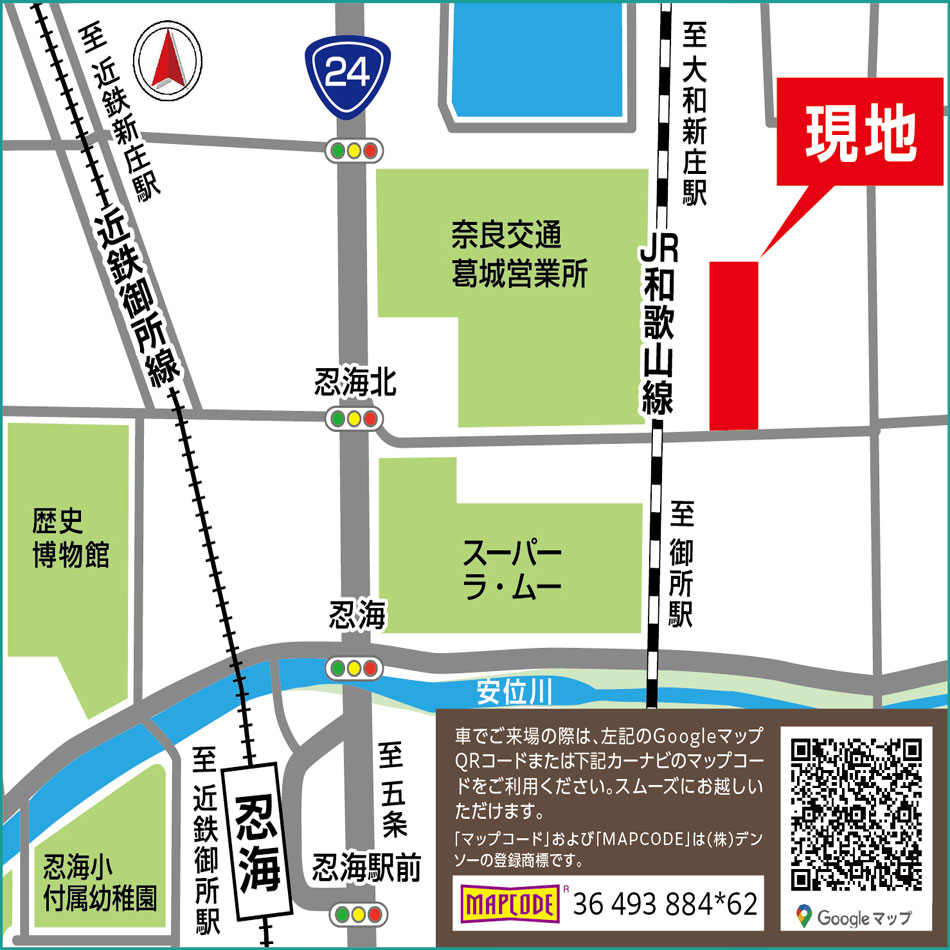 現地の西に、国道24号線が南北に通っています。この区間は、国道168号線と重複した区間ですので、